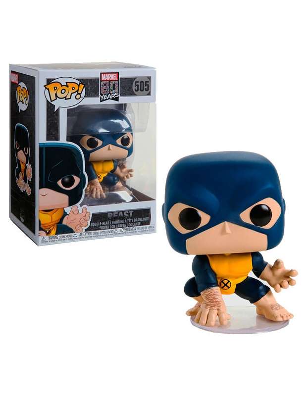 Funko Pop! de La Bestia " The Beast" de los X-Men de Marvel en su edición 80 aniversario con su traje original de las primeras apariciones en los comic. Este Funko Pop de La Bestia de los X-Men es una linea de Funko Pop de Marvel realizados a finales de 2019 con motivo del 80 aniversario de los comic de Marvel.