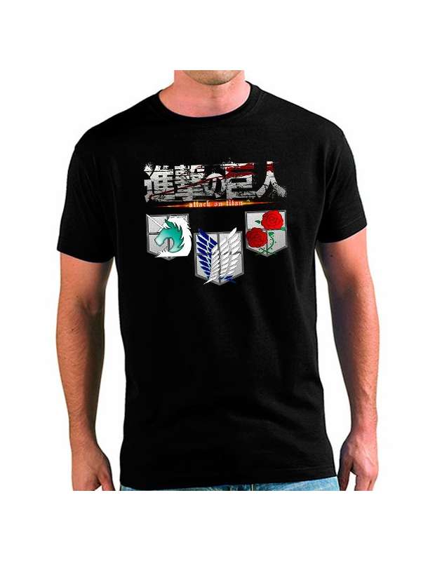 Camiseta El ataque de los titanes shingeki no kyojin - 3 escudos (Unisex manga corta)