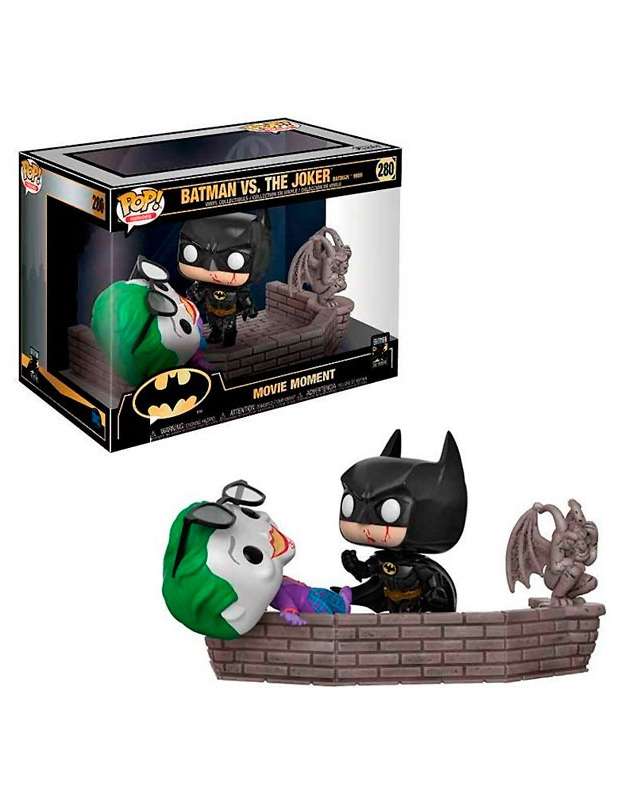 Figura Pop Movie Moments Funko de Batman Vs Joker Edicion Exclusiva 80 aniversario. Esta escena Funko Pop pertenece a la película de Batman de 1989 magistralmente interpretada por Michael Keaton y el mítico Jack Nicholson. Tiene muy buenos acabados por lo que es una figura altamente coleccionable para fans de Batman