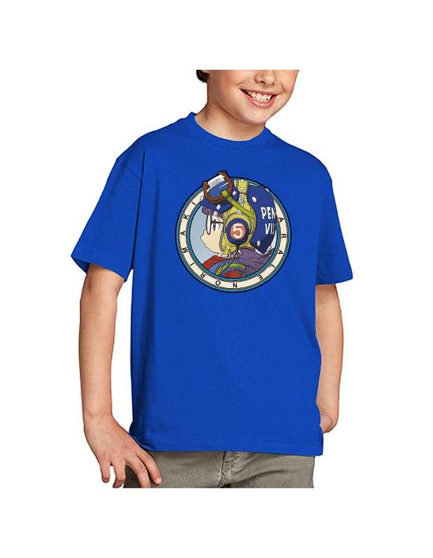 Camiseta de moda niños con diseño exclusivo Arale escudo, donde aparece la simpática Arale de perfil en un diseños estilo escudo.