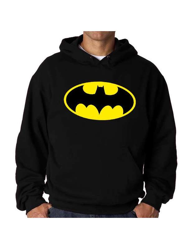 Caracteristicas técnicas de la sudadera con capucha Batman estampada en vinilo textil.