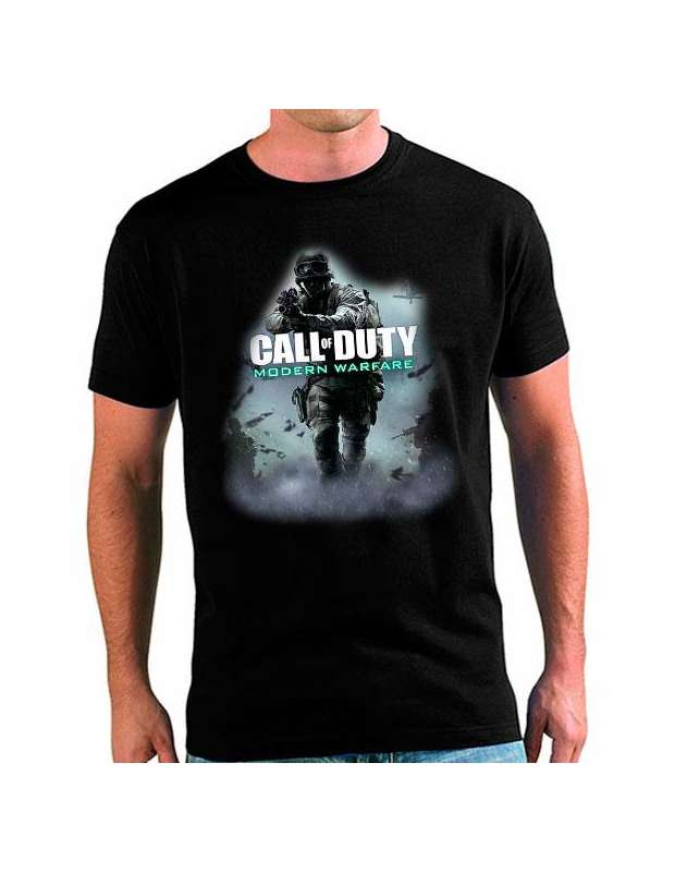 Calidad : CAMISETAS ORIGINALES DE MANGA CORTA TALLAS ADULTOS call of duty Modern Warfare JERSEY • 100% algodón peinado 160 gms - camiseta manga corta negra- jersey personalizada con tapacosturas reforzado en el cuello • cuello de punto acanalado con elastano. Camiseta original con estampado personalizado - customizado.