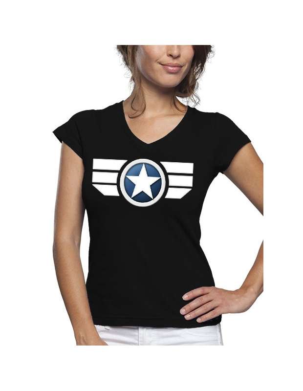 Camiseta Capitan América diseño "Escudo clásico" de mujer color negro