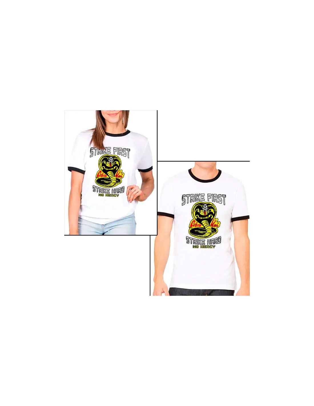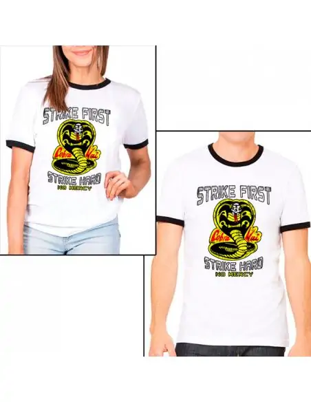 • Camiseta Cobra Kai Blanca con ribetes rojos o negros a alegir.
