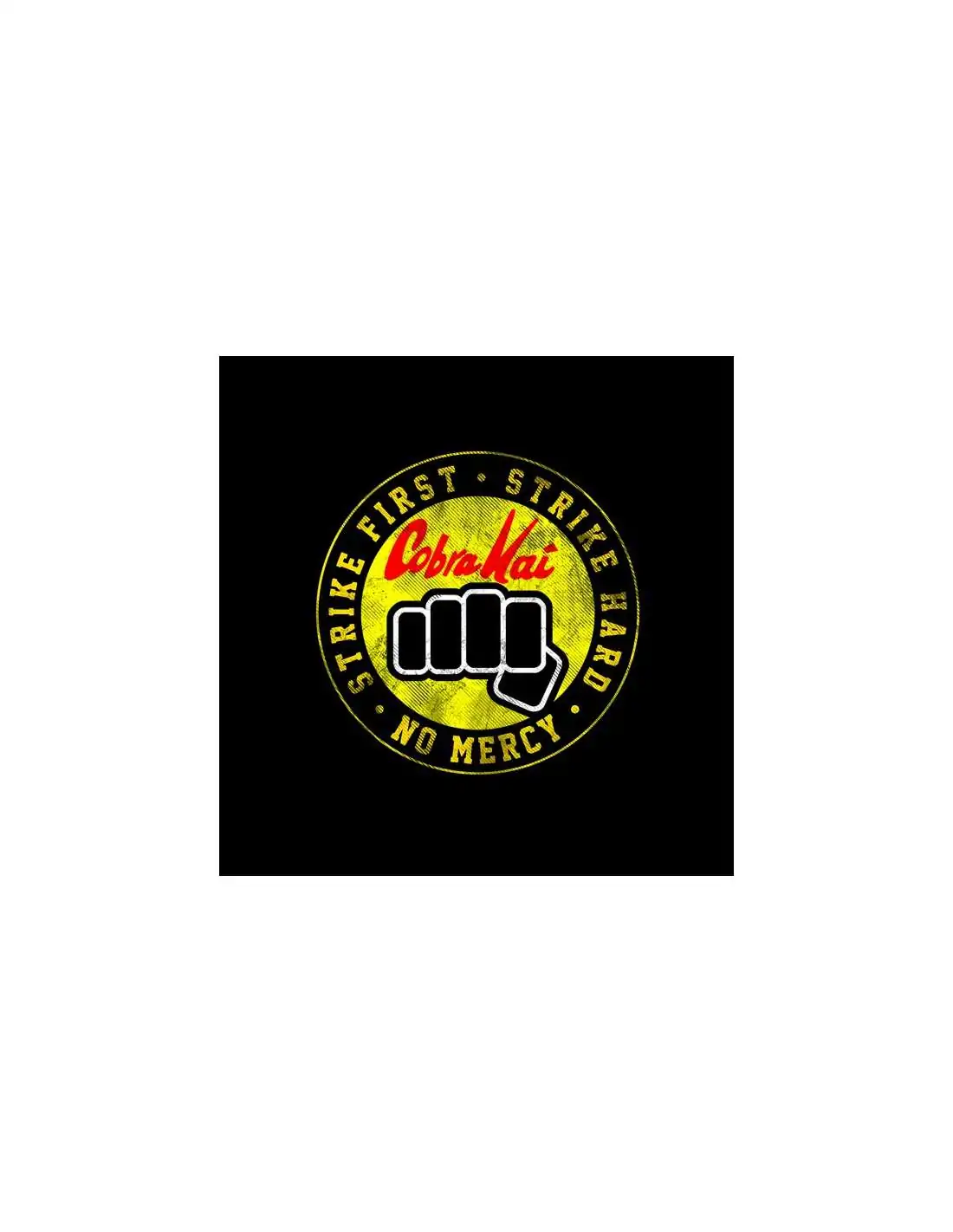 Camiseta Cobra Kai de tirantes tipo gimnasio estampada con el logo amarillo del puño. Esta fabulosa camiseta de tirantes de Cobra Kai es exclusiva de nuestra web y lleva estampado el dibujo del puño de cobra Kai en forma de emblema con el lema de Cobra Kai, todo ello en un estilo desgastado estilo vintage años 80. La camiseta de Cobra Kai es de tirantes de gimasio con espalda abierta estilo culturista y está disponible en tallas de hombre.