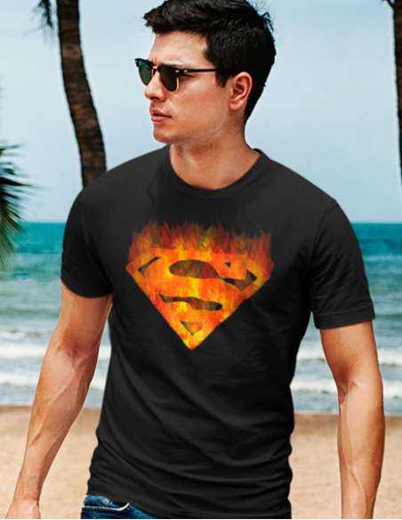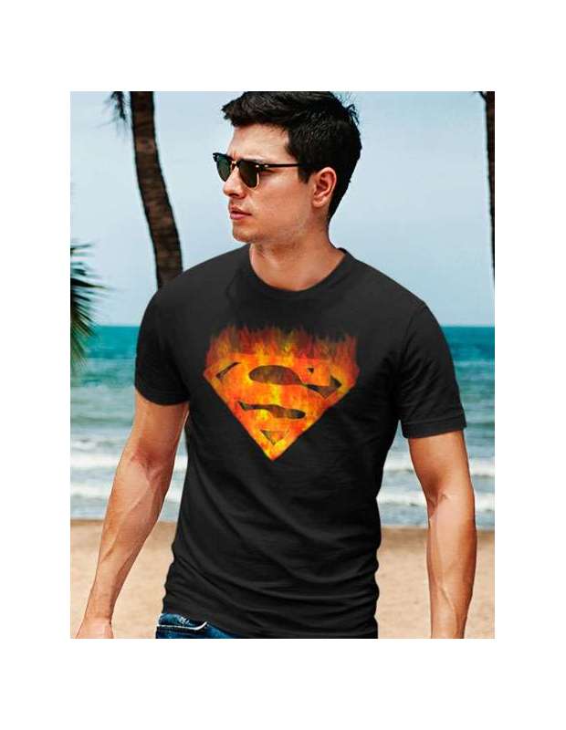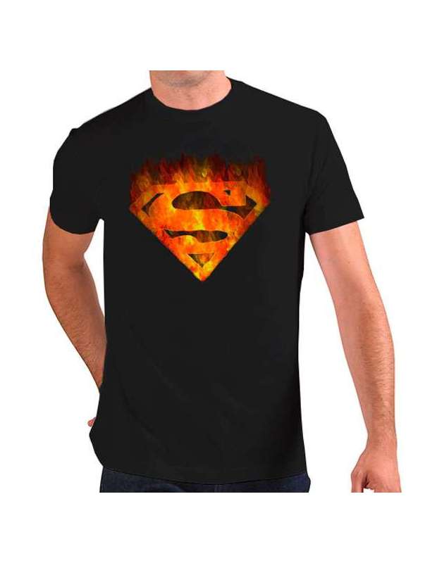 Camiseta personalizada con el logo de Superman en llamas para hombre y niño . La camiseta de Superman con el logo en llamas está confeccionada en algodón 100% manga corta en color negro. Y es una gran idea para regalar a fans de superman o para ocasiones especiales como por ejemplo El dia del padre , para cumpleaños, navidad o cualquier otra ocasión