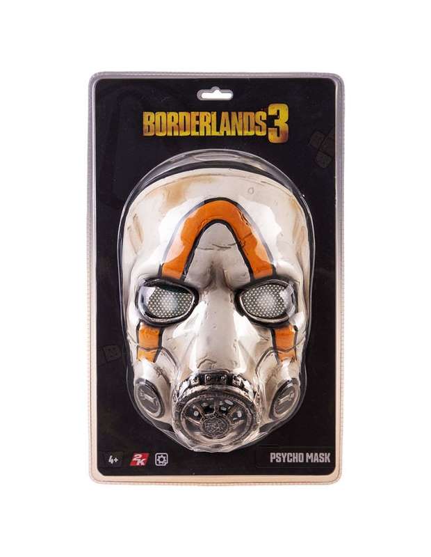 Máscara de Psycho Borderlands 3, uno de los enemigos más comunes del videojuego Borderlands y que aparece en la portada de Borderlands 3.  La máscara es de muy buena calidad y está fabricada en pvc grueso con en el borde interior acolchado y correas en pl parte de atrás para un buen ajuste. La máscara de Borderlands es 100% oficial realizada por la empresa gaya-entertainment en una escala de 1:1 "tamaro real" así que te la puedes poner para cosplay o para decorar en tu casa.