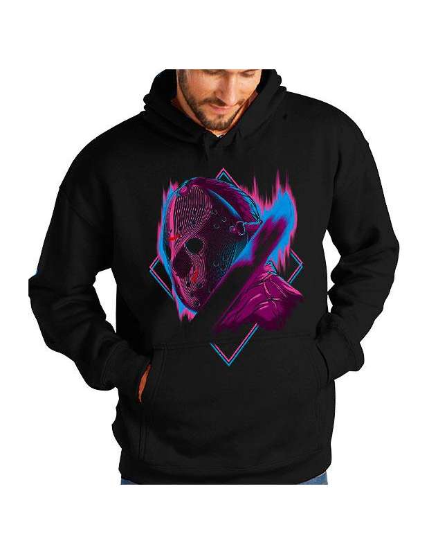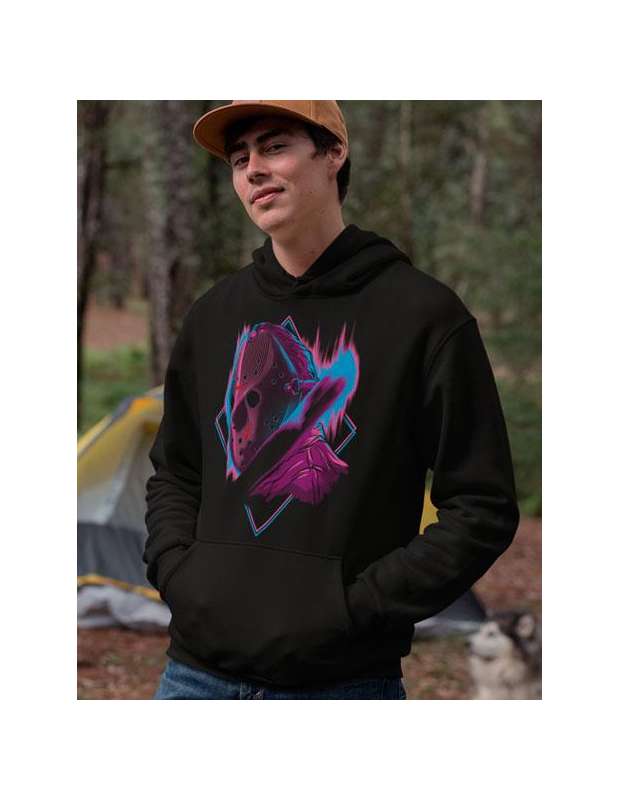 Terrorífica sudadera de Jason Voorhees inspirada en la fabulosa película Viernes 13. La sudadera de Jason Voorhees la tienes disponible en 2 estilos diferentes , cuello redondo o con capucha y bolsillos. Esta confeccionada en 80-70% algodón y el resto de poliester y tiene un grosor de 280gms (Grosor medio alto) con felpa interior idela para el invierno.