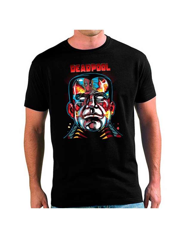 Camiseta divertica del superhéroe Coloso de X-men con DeadPool reflejado.