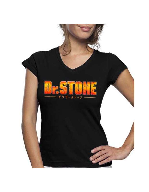 Camiseta Dr.Stone de mujer estampada con logo customizado del Manga y Anime Dr.Stone de corte entallado. Esta camiseta de Dr.Stone para mujer está pensada para los más entusiastas de este fantástico Anime y Manga que se está volviendo muy popular entre los Otaku.