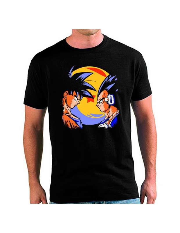 Camiseta Dragon Ball Z Goku vs Vegeta cara a cara de manga corta y algodón 100%.