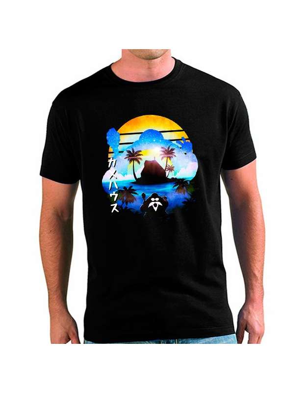 Espectacular camiseta de Dragon Ball Z con Kame House y Master Roshi en doble sombra. La camiseta esta estampada con dibujo fan art estilo años 80 por lo que se ve muy original y diferente. La tienes la en todas las tallas disponibles para niño y hombre, en 2 colores y a elegir en manga corta o tirantes de hombre estilo gimnasio.