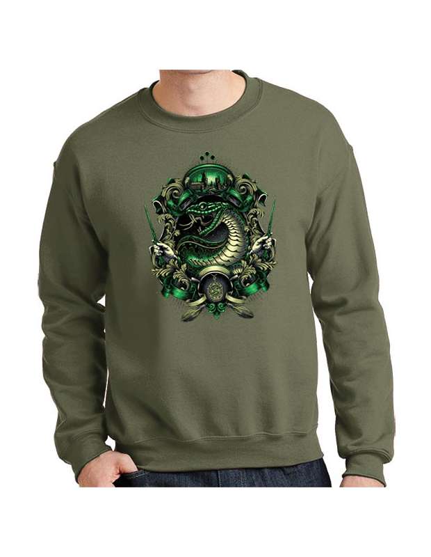 Sudadera Unisex de cuello redondo o con capucha a elegir personalizada con un espectacular diseño fanart de la casa Slytherin de Harry Potter. Esta sudadera es genial para los fans de Harry Potter ya que la casa Slytherin es una de las más poderosas de Hogwarts y en ella se encuentran personajes tan importantes como Draco Malfoy o el propio Lord Voldemort. Elije color y modelo a tu gusto