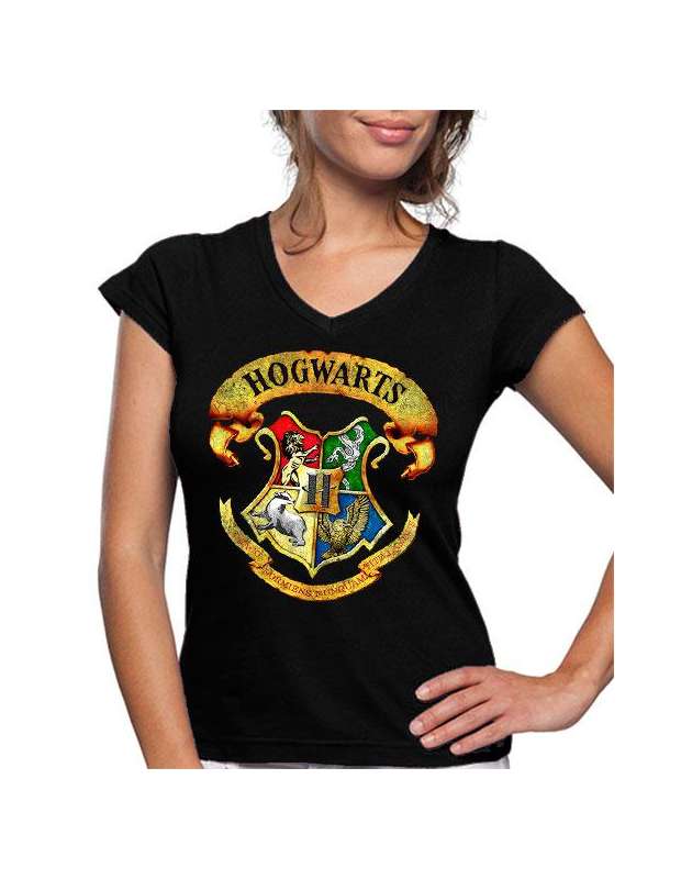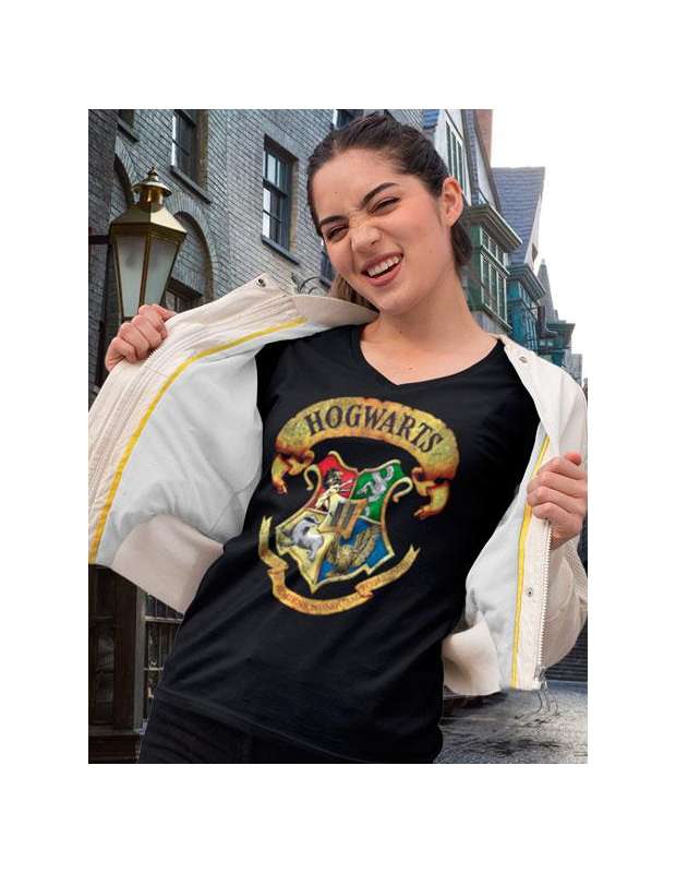 Caracteristicas técnicas de la camiseta de mujer Hogwarts emblema.