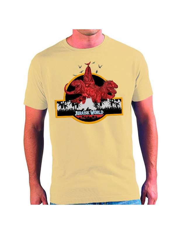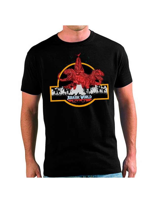 Fantástica camiseta con diseño exclusivo de Mx Games, donde se pueden apreciar a varios de los dinosaurios que aparecen en la pelicula Jurassic World y a uno de sus principales protagonistas en plena acción , en una recreacion artistica Fan-Art de gran calidad que simula un hipotético logo fruto de la imaginación del artista. Una fatástica camiseta de Jurassic World para ti, que solo podrás encontrar en Mx Games.