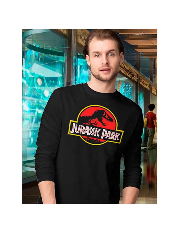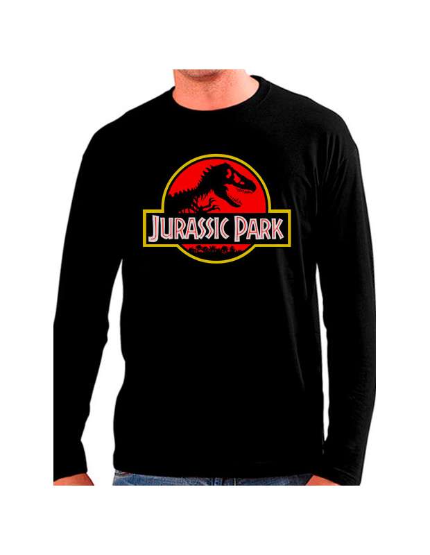 Camiseta Parque Jurasico logo clásico negra manga larga
