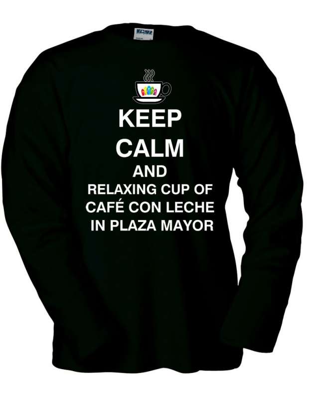 Camiseta Keep calm and relaxing cup of cafe con leche in plaza mayor de hombre manga larga