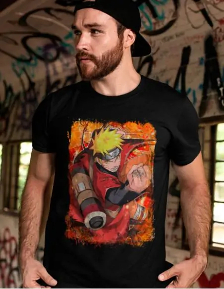 Estupenda camiseta de Naruto estampada con dibujo artístico estilo tapíz desgastado Naruto Shippuden. Sin duda un espectacular dibujo estampado en la zona delantera. La camiseta simula un tapíz de Naruto con un pequeño desgaste que le otorga un aspecto vintage y la convierte en una exclusividad de enuestra web.
