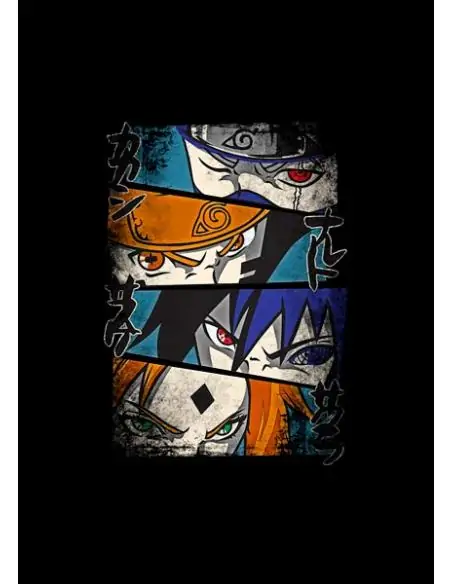 Estupenda Sudadera de Naruto estampada con dibujo artístico en la que se aprecian a varios personajes principales del anime como Naruto, Saske, Sakura y Kakashi. El dibujo de la sudadera de Naruto está estampado en la zona delantera de la camiseta y tiene un pequeño desgaste que le confiere un aspecto un tanto vintage, por lo que la hace única y exclusiva.