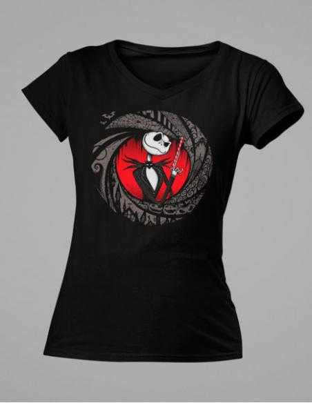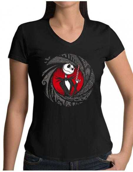 Caracteristicas de la camiseta de mujer Jack Skellington con bastín de caramelo