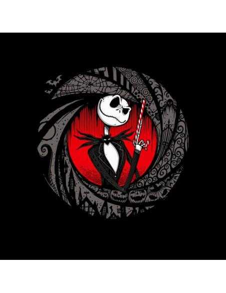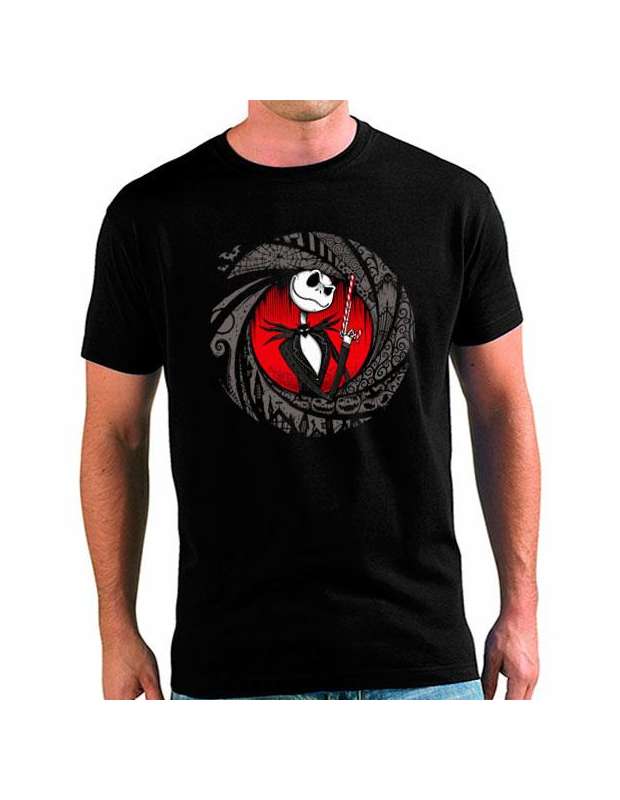 Estupenda camiseta de Jack Skeleton inspirada en la fabulosa película de Pesadilla Antes de Navidad del genial Tim Burton. Esta camiseta tiene un dibujo fanart de Jack Skellington con  un bastón de caramelo y esta confeccionada en 100% algodón peinado de 150gms (Grosor medio de camiseta). Se ha estampado con tintas respetuosas con el medio ambiente y con tu piel de gran resistencia a los lavados. Tienes todas las tallas disponibles para hombre y adolescente.