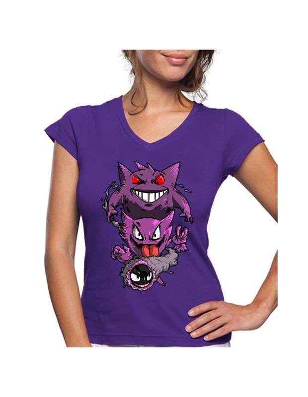 Caracteristicas técnicas de la Camiseta de mujer Pokémon evolución de Gengar.
