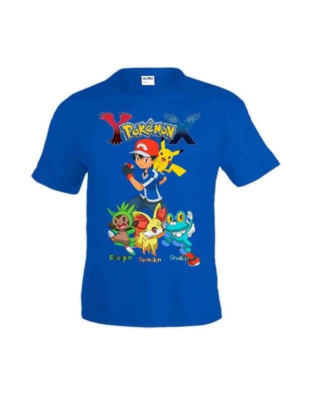 Camiseta Pokemon X-Y Chespin,Fennekin,Froakie manga corta azul - MxGames