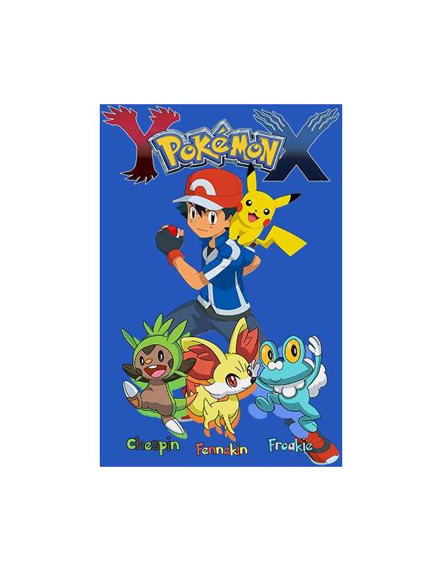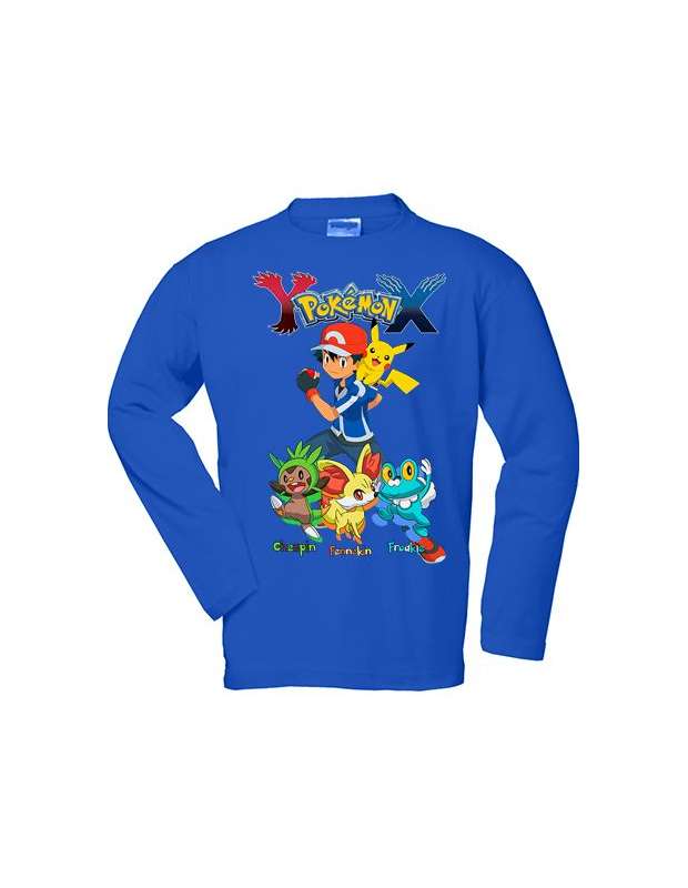 Camiseta Pokemon X-Y Chespin,Fennekin,Froakie manga larga azul - MxGames