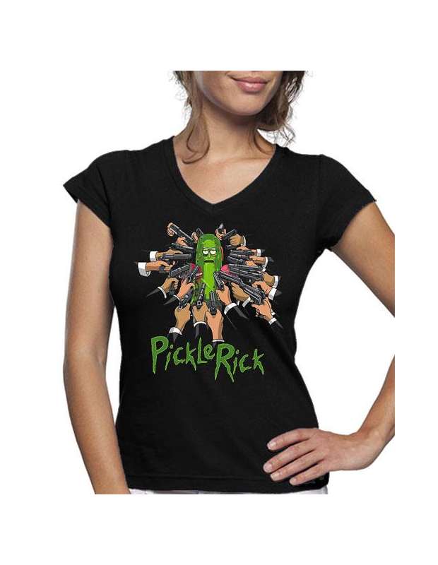 Caracteristicas técnicas de la camiseta de mujer Rick y Morty Rick Pepinillo "Pickles" Acorralado