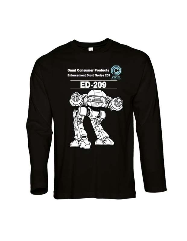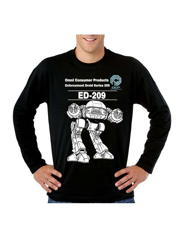 En las peliculas de RoboCop y el ED-209 se enfrentan y es uno de los momentos más espectaculares de la película del 2014...Esta fantástica camiseta de robocop está pensada para los más fans de la pelicula.