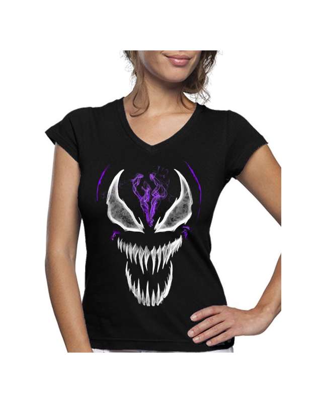 Camiseta mujer con diseño personalizado del Superhéroe antihéroe Venom. Esta bonita camiseta con la cara de Venom es de manga corta estilo japonés o maga larga según elijas. La tienes disponible en color negro y en tallas que van dede la Talla S hasta XXL (consulta tu talla abajo de estas lineas). Camiseta fabricada en algodón de 150gms y estampada España con tintas de gran calidad con certificado europeo Standard 100 - OEKO-TEX®. Recomendaciones de lavado