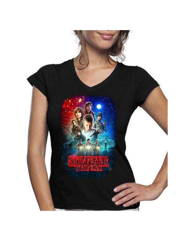 Caracteristicas técnicas de la camiseta de mujer Stranger Things diseño Poster.