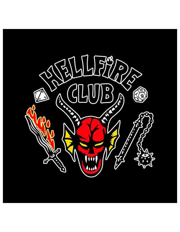 La camiseta tiene estampada una ilustración de Hellfire Club en la parte frontal y encuanto al estilo es de corte recto Unisex apta para hombre o mujer.