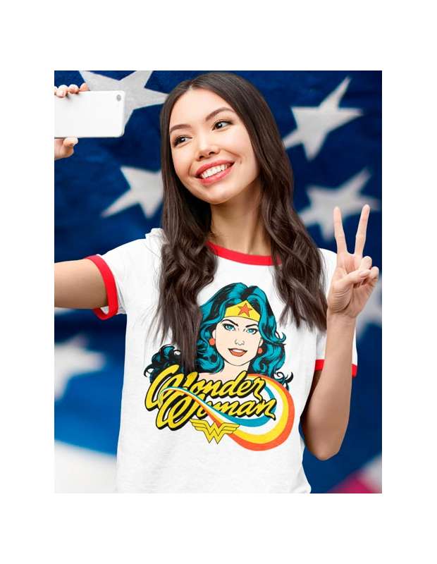 Caracteristicas de la camiseta Wonder Woman ringer ► Retro arcoíris