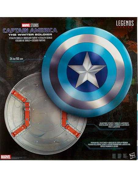 Estupenda Réplica oficial del escudo del Capitán América The Winter Soldier con los colores de sigilo perteneciente a la colección Marvel Legends infinity saga. Se trata de una réplica Premium tamaño real - escala 1:1 (61 cm de diámetro aprox.) del escudo hecho de vibranium del líder de los Vengadores como el que utilizó en The Winter Soldier. El escudo puede embrazarse y sujetarse con correas a medida de imitación de cuero. Un arma defensiva creada para el defensor de las libertades y el patriotismo que ahora puedes usar tú también.
