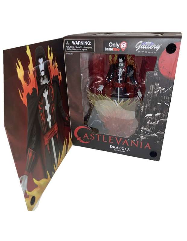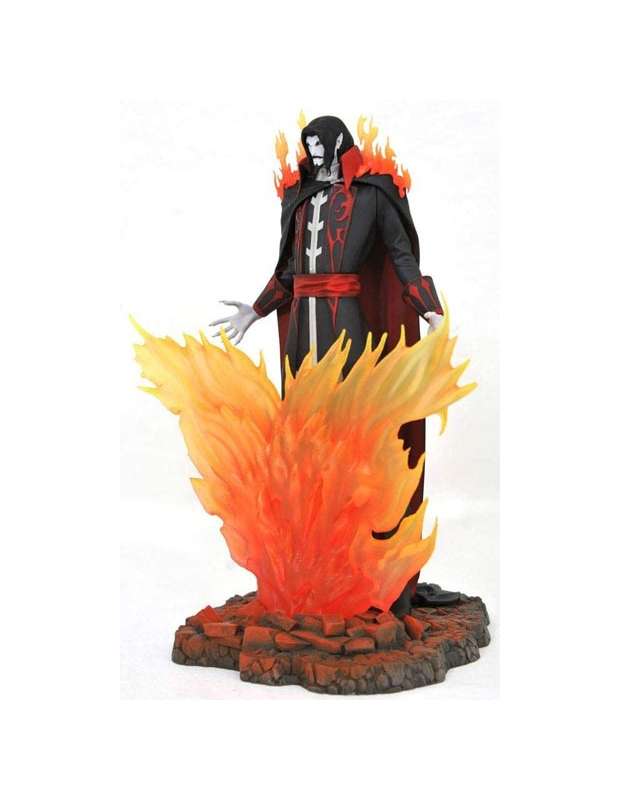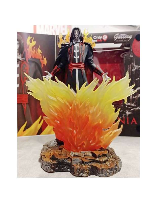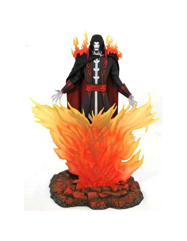 Espectacular figura del Drácula de Castlevania de la linea Gallery del fabricante Diamond Select Toys. La figura mide un poco mñas de 23 cms de alto y tiene unos extraordinarios acabados en relacion a su bajo precio. Tanto la figura como su base o los efectos de fuego, tienen muy buenos acabados en relacion a su bajo precio. Sin duda es ideal para los fans del videojuego de Castlevania y sus animes o mangas.