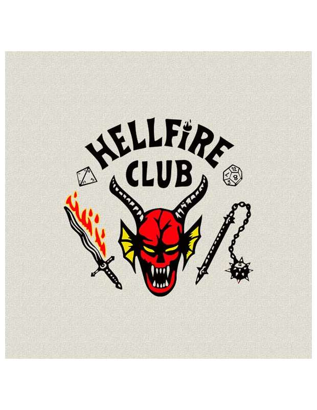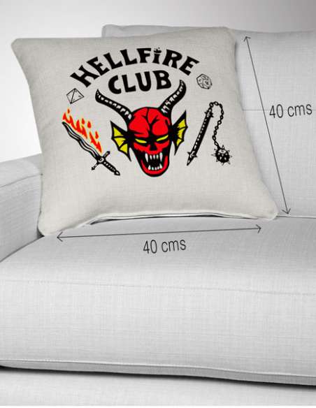 La funda de cojín de Hellfire Club dará un toque diferente a tu sofá, butaca o cama, ambientandolo como si te encontraras en los años 80 en Hawkins con Dustin, Eddie, Lucas etc.. jugando a un juego de dragones y mazmorras o hablando sobre ello....