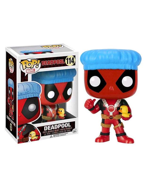 Figura Funko pop Deadpool edición limitada con gorrode baño edición 2016. Figura Pop Funko Deadpool nº 114 del superhéroe antihéroe mas divertido de Marvel.Tamaño 10cms (tamaño standar de figuras Pop) Fabricada en Vinilo.
