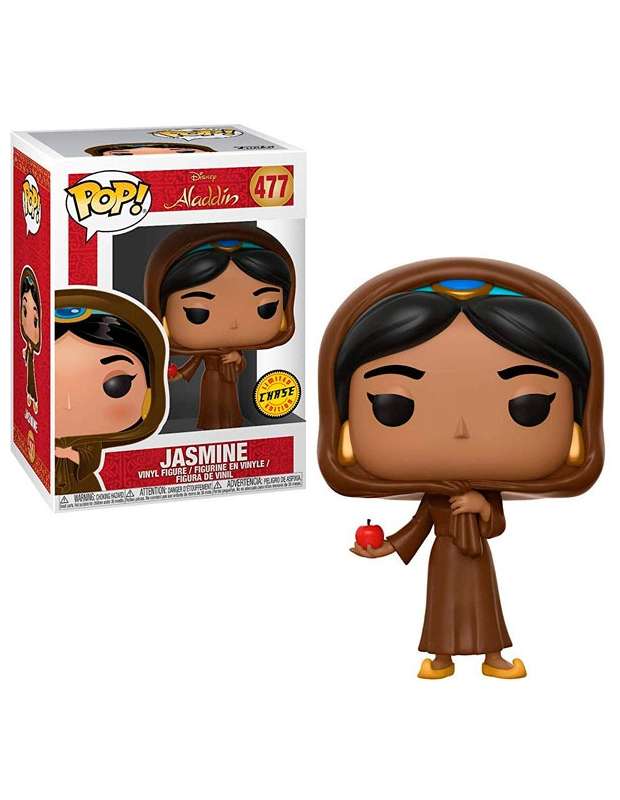 Funko pop CHASE del personaje Jasmine de la pelicula "ALADÍN" de Disney . Funko Pop  Disney nº477 donde Jasmine sostiene la famosa manzana que le ofrece al niño en la película .Tiene muy buenos acabados y al tratarse de una edición Chase es muy escasa, ya que solo hay 1 entre 6 unidades, ideal para regalar a coleccionistas de Disney.