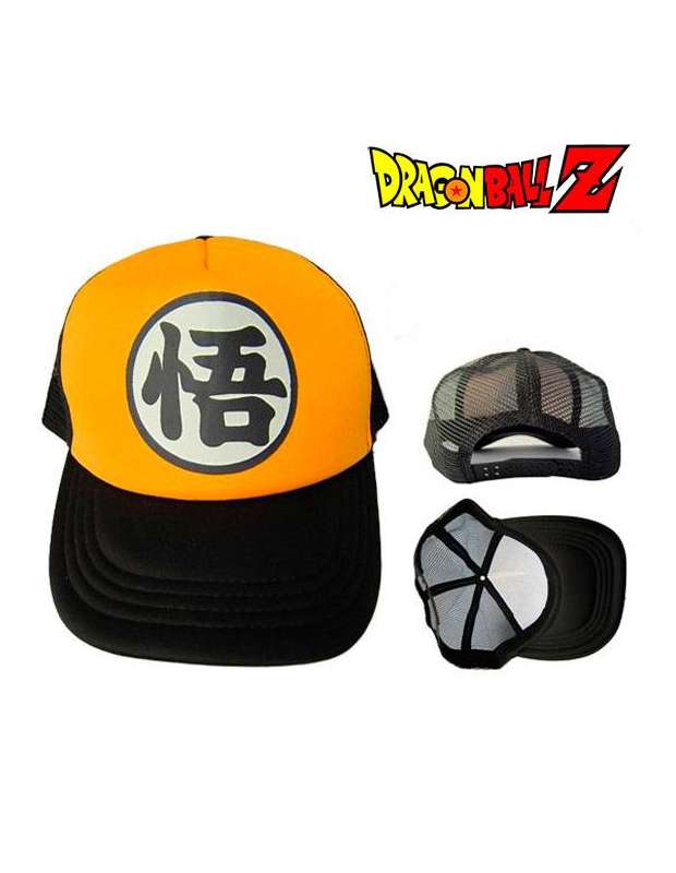 Gorra naranja con rejilla decorada con Dragon Ball Z kanji go
