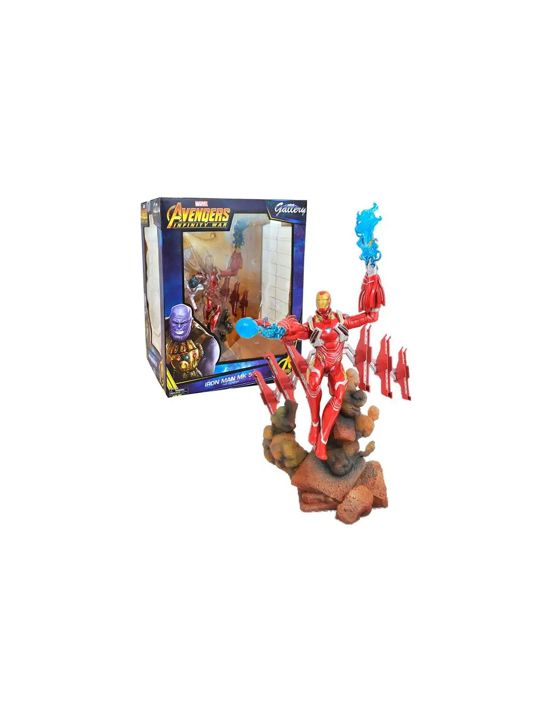 Espectacular figura Marvel Iron Man de los Vengadores Infinity War, de la linea Gallery del fabricante Diamond Select toys. Se trata de una espectacular estatua de Iron Man ideal para coleccionistas de unos 35 cms contando desde su base hasta el punto más alto, que posee unos increibles acabados y detalles, por lo que la convierte en un regalo ideal para cualquier fan de Iron Man