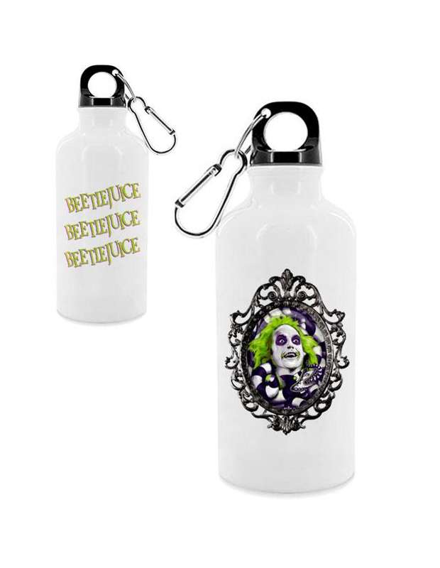 Fantástica botella de Beetlejuice de Tim Burton realizada en aluminio de 420 ml con tapón de rosca de color negro y mosqueton decorada con Beetlejuice en un espejo y por detrás 3 veces el nombre de Beetlejuice ¿te atreves a invocarlo? Todo un clásico del cine de terror de Tim Buton y por esta razón es uno de los regalos más originales para los fans del cine de terror con un toque de humor. Es ideal para excursiones, gimnasio, meriendas y desayunos ya que gracias al aluminio tus bebidas conservará muy bién sus propiedades y temperatura.