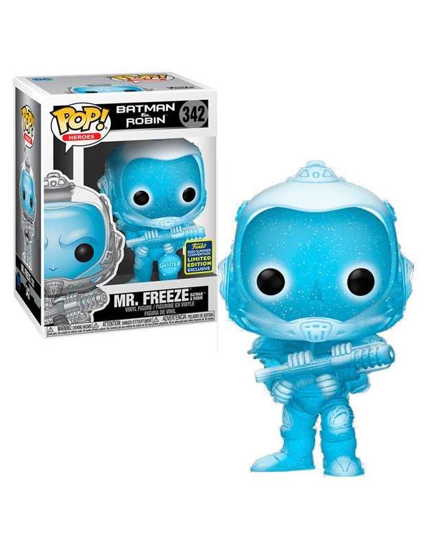Figura Funko Pop de Mr.Freeze o Sr. Frio de Dc Comics con acabado semitranslúcido y glitter. Funko Pop Edición Limitada exclusiva de la Summer Convention de USA de 2020. Este Funko Pop de Mr Freeze o Sr.Frio fué interpretado por el colosal Arnold Schwarzenegger en la película Batman y Robin