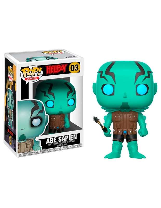 Funko Pop! Abe Sapien de Hellboy. La figura Funko Pop!  Abe Sapien Hellboy está basado en el comic del mismo nombre y pertenece a la serie Comic de Funko nº03, .Éste Funko de  Abe Sapien sostiene en su mano un arpón y tiene muy buenos acabados.