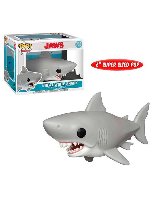Funko Pop! del Tiburón blanco de la película Jaws de 1975 versión supersized . El tiburón Blanco que aterrorizó a los bañistas de la ciudad de Amity Island y al que darían caza el Jefe de Policía Martin Brody, un biologo marino y un caza tiburones, aunque nuestro "amigo el escualo no se lo pondría nada fácil.