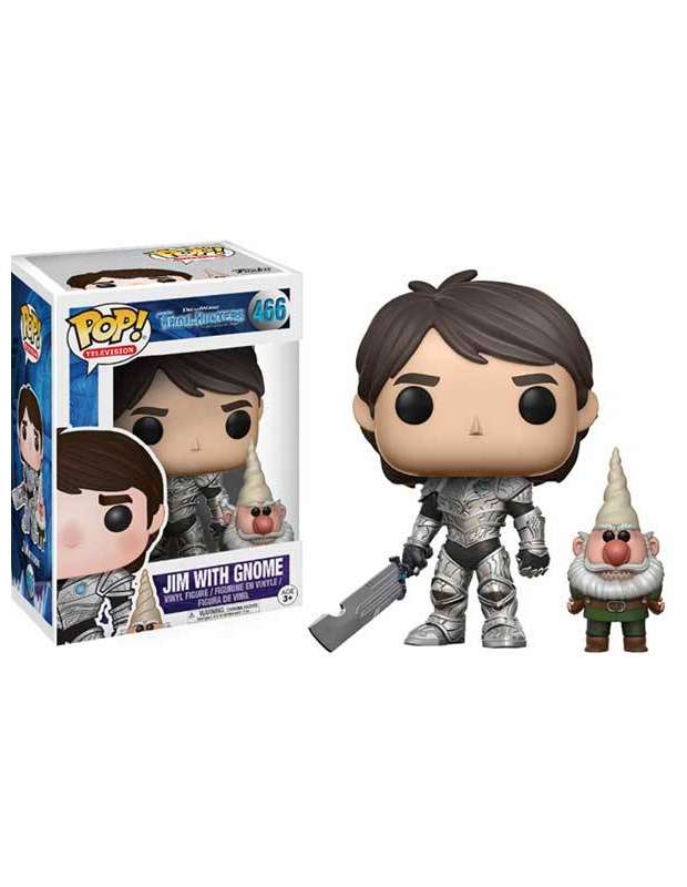 Funko pop! de la serie de Tv Trollhunters del personaje Jim With Gnome. Funko Pop Television series nº466 de la serie televisiva Trollhunters original de netflix y dirigida por Guillermo del Toro.Tamaño Toby unos 10cms y el gnomo unos 4 cms. Figuras con muy buenos acabados y fabricada en vinilo por Funko.