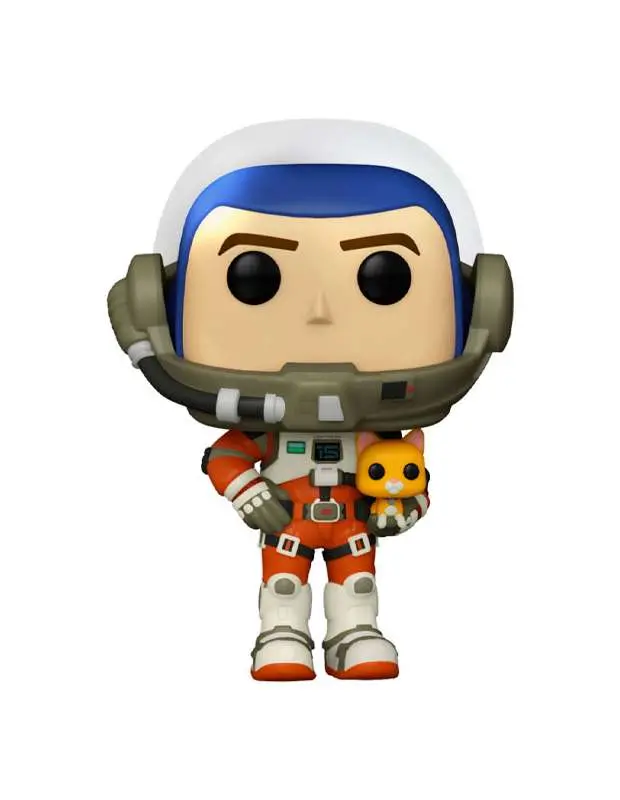 Funko Pop de Buzz Lightyear (XL-15) con el gatito robot Sox en sus manos, de la película Lightyear de Disney Pixar de 2022. En este caso Funko no presenta Buzz Lightyear vestido con el traje espacial de astronauta XL-15. Si eres coleccionista o fan de Buzz Lighyear prparate para ir al infinito y más allá con este fantástico Funko Pop!
