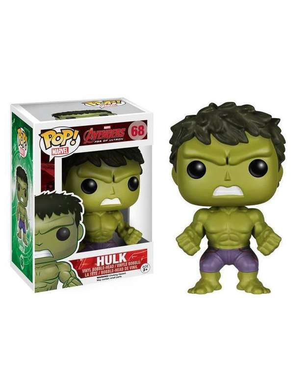 Figura Funko pop! del increible Hulk de la era de Ultrón. Figura Pop de Hulk nº 68 de de la serie Marvel de Funko presentado en caja original con ventana.Tamaño 10cms (tamaño standar de figuras Pop) Edición especial.
