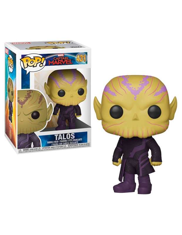 Funko Pop! del indómito Talos de la pelicula de Marvel  Studios Capitana Marvel. Funko Pop de Talos el villano de la raza Skrull en la película Captain Marvel viene en su caja decorada con ventana Frontal Standard y está muy bien acabado, por lo que resulta un el regalo ideal para coleccionistas del universo Marvel y las peliculas de Marvel Studios.
