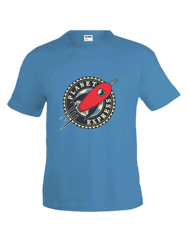 Caracteristicas Camiseta Planet Express manga corta color Azul Turquesa, Naranja, Blanco y Negro.